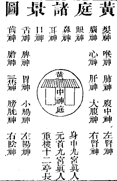 黄庭经者,东华扶桑帝君之秘文也。一名大帝金书。以其刻于金简,故名金书。一名东华玉篇。以其又刻于玉。亦名玉篇。其经有内外两篇。内篇者,太上玉晨道祖之所著。是谓正经,故名内篇。外篇者,太上老君道祖之所解。是谓辅经,故名外篇。虽分内外两篇,其言黄庭诸景之义一也。黄者,中央之色,即中之象;庭者,人居之处,即神室之象。以其中虚,无物不包,无理不具,故以庭喻之;以其中藏生机,万物皆从此出,故以黄庭喻之;经者,径也,道也。黄庭经即演说“中”之道也。这个中,无形无象,视之不见,听之不闻,搏之不得;恍惚杳冥,无方所、无定位;至无而含至有,至虚而含至实;其大无外,其小无内,包罗三千大千世界,内有四象五行、九宫八卦、三元九气,万神所归,千灵所聚,出圣出贤,成佛成仙;儒曰太极,又曰道义之门;释曰真空,又曰不二法门;道曰虚无,又曰众妙之门,又曰元牝之门。三教圣人,方便立名,无非形容此“中”之真实象耳。在人身,非四大一身上下之中,非肾前脐后之中,非心下肾上之中,亦非头顶天谷之中,乃在四大不着之处,万有皆空之境。后人不知此“中”是何模样,直以有形有象、有方有所度之。玉晨、老君二道祖,著为黄庭经内外篇,即有以形无,即实以形虚,大露天机,点化后学,慈悲之至。奈何后世学人多无真传,罔识二篇取义。见有内景外景之名,而遂认景为真,执於有象;或守窍,或思神,或搬运,千门万户。无怪乎修道者如牛毛,成道者如兔角也。夫景者,可见可闻、有形有象之谓。“中”本至虚至无,不可见、不可闻,何得有景?若稍有景,便是幻象,非其道矣。况黄庭只一物,而景则有五脏六腑、九窍百骸之多般。可知景是景,黄庭是黄庭。诸般之景,乃黄庭之外物耳。盖景者,黄庭之枝叶;黄庭者,景之根本。根本不可见,枝叶乃可见。故书名曰黄庭内景经、黄庭外景经。道祖分明与人说了,特人未之深思也。试观诸景,皆各有神。如上部,则有发神、脑神、眼神、鼻神、耳神、口神、舌神、齿神;中部则有喉神、心神、肝神、脾神、胃神、胆神、肺神、三焦神;下部则有腹神、大肠神、小肠神、膀胱神、左阳神、右阴神、左肾神、右肾神;又有身中九宫真人:心为绛宫真人;肾为丹元宫真人;肝为兰台宫真人;肺为尚书宫真人;脾为黄庭宫真人;胆为天灵宫真人;大肠为永灵宫真人;小肠为元灵宫真人;膀胱为身房宫真人。又有元首九宫真人:双丹宫真人、明堂宫真人、丹田宫真人、泥丸宫真人、流珠宫真人、大帝宫真人、天庭宫真人、极真宫真人、大皇宫真人。又有重楼十二神。其神甚多不可数计。易曰:“阴阳不测之谓神”,又曰:“神也者,妙万物而为言者也”。曰不测,曰妙万物,则是在恍惚杳冥之中,不色不空、不有不无,不可见、不可闻,亦不可思议,仅可心知,不可口说。这个不可见、不可闻、不可思议之神,即黄庭之神也。黄庭之神,不在心下肾上黄庭之处,不在泥丸黄庭之处,不在脾部黄庭之处。经中虽言三黄庭,皆言黄庭之景,非言黄庭之真也。黄庭之真,乃一大包罗。因其为一大包罗,其神无处不在,无时不有。因其有此黄庭大包罗之神,故五脏六腑、九窍百骸,津液上下流通,血气来往穿贯,皆自然而然,无容勉强於其间。五脏六腑、九窍百骸之神,皆本於绛宫真人。绛宫真人,一名肉团神,即心王也。心为一身之主,一身之神,皆心王统之。然虽心王统之,其所以能神者,总是黄庭一神运动焉。心王若不借黄庭神之灵,亦不能神。是黄庭神,又为心王之王。心王统诸神,实黄庭神统诸神也。一神分而为诸神,诸神归而为一神。神为真,景为假,真借假而施功,假依真而得灵,真中运假,假中藏真。假之有神,实黄庭之神而神也。可知黄庭经说来说去,只是说一神字,无非说一“中”字。“中”即神也,神即“中”也。中字从“口”从“|”。“口”象太极“○”,即黄庭也;“|”象一气,①即神也。“口”内有“|”而为神,即黄庭中有神也。所谓神室者是也。中而未有不神,神而未有不中。且中者,不偏不倚,无过不及,混然圆成之义。混然圆成,活活泼泼的,不识不知,顺帝之则,自有个神在。因其有神在,故五脏六腑、九窍百骸,各形其形,各事其事,并行而不相悖也。内篇曰:“虚无寂寂空中素,使形如是不当污”。又曰:“玄元上一魂魄炼,一之为物叵卒见。须得至真乃顾眄,至忌死气诸秽贱。六神合集虚中宴,结珠固精养神根。玉匙金钥常完坚。外篇曰:“物有自然事不烦,垂拱无有身体安,虚无之居在帏间,寂寞曠然口不言。恬淡无欲游德园,清净香洁玉女存,修德明达道之门。”又曰:“恬淡无欲养华根,服食元气可遂生。还返七门饮太渊,通我喉咙过清灵。问於仙道与奇功,服食灵芝与玉英。头戴白素之丹田,沐浴华池灌灵根。”虚无、玄元、德园、华池、皆黄庭之别名也。上一、至真、神根、华根、灵根、灵芝、玉英,皆黄庭神之别名也。空中素、虚中宴、结珠固精、恬淡无欲、服食元气,皆养黄庭神仙道奇功也。内外二篇,皆先形容诸景,而后归局於虚无、玄元、德园、华池,结果於空虚恬淡。若以景为道,何言“须得至真乃顾眄,至忌死气诸秽贱,恬淡无欲养华根,服食元气可遂生”乎?《阴符经》曰:“人知其神而神,不知不神而神。”神而神者,诸景之神;不神而神者,黄庭之神。因其有黄庭之神,而诸景亦各能神其神。若不修不神而神之神,只修神而神之神,则五脏六腑、九窍百骸俱皆有